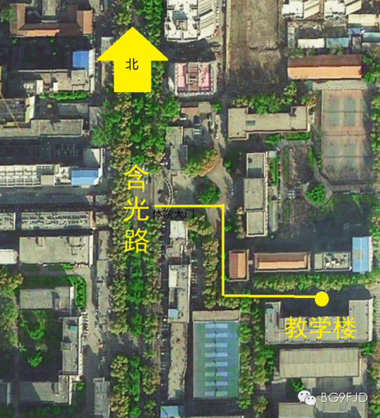 考生可乘坐6、21、29、35、40、512、521、700、707等公交线路,黄雁村站下车。黄雁村十字向南约310米路东就是体院大门。